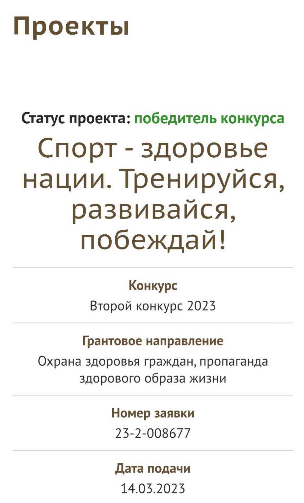 стал победителем 2 конкурса Фонда Президенских грантов в 2023 году по направлению: