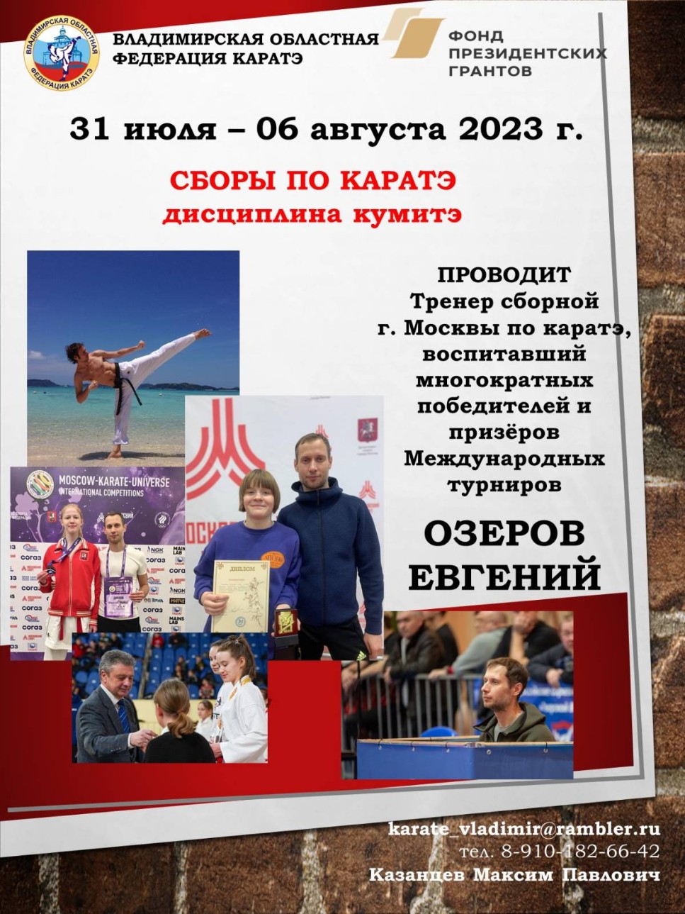 С 31 июля по 06 августа 2023 года Владимирская областная федерация каратэ